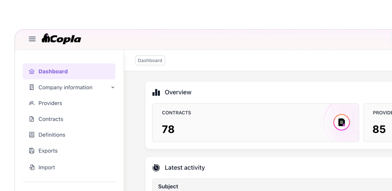 Manage your DORA Register of Information without the full compliance platform. Copla Registry handles ICT third-party reporting end-to-end — providers, contracts, auto-validation against EBA requirements, and regulator-ready exports.