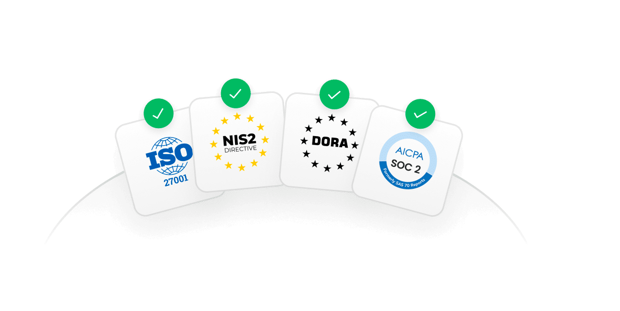 DORA, ISO 27001, NIS2, SOC 2 - managed end-to-end.