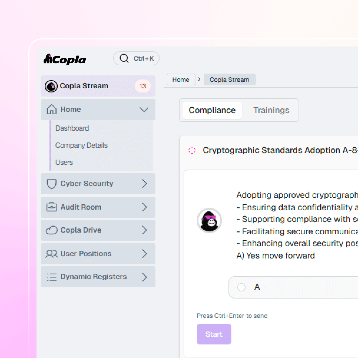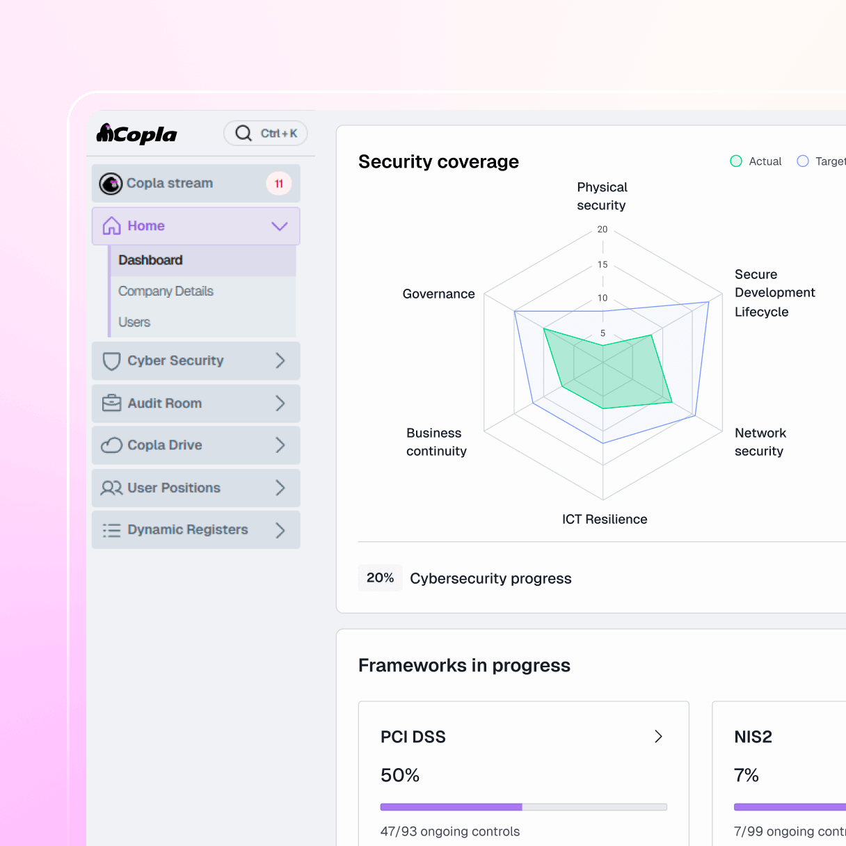 Copla is a compliance and cyber-resilience platform that helps companies manage frameworks like PCI DSS